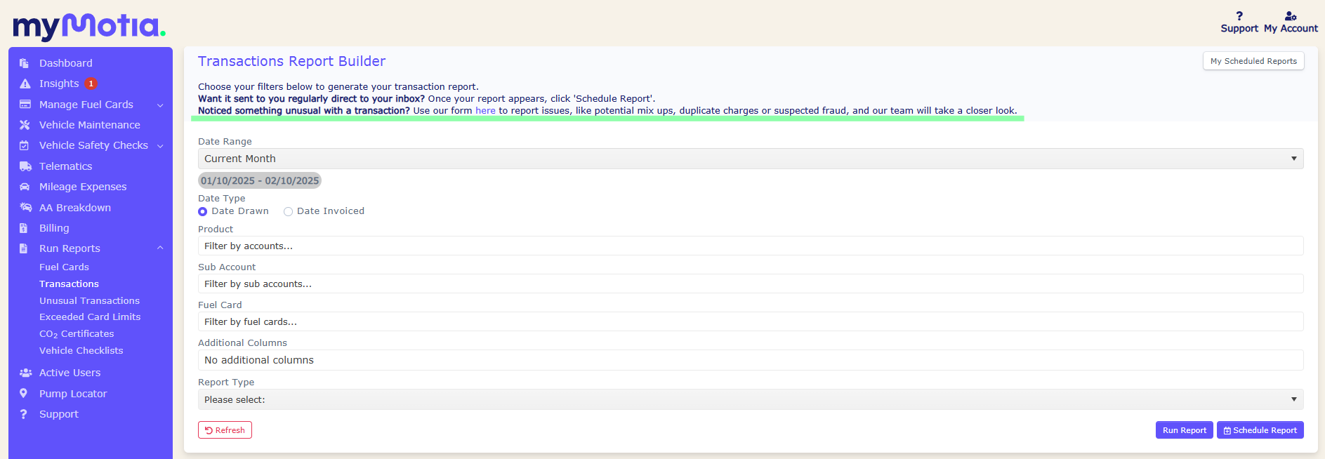 Head to the Transactions Page in myMotia – the form link is right at the top.